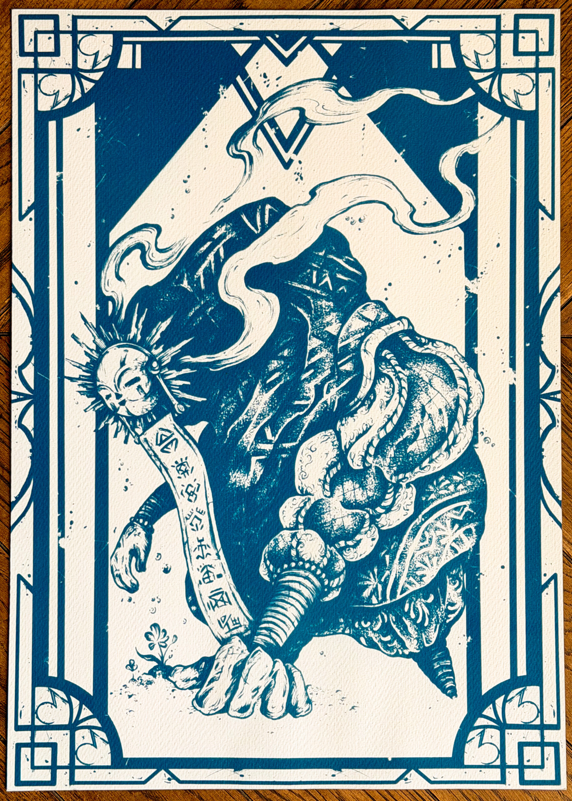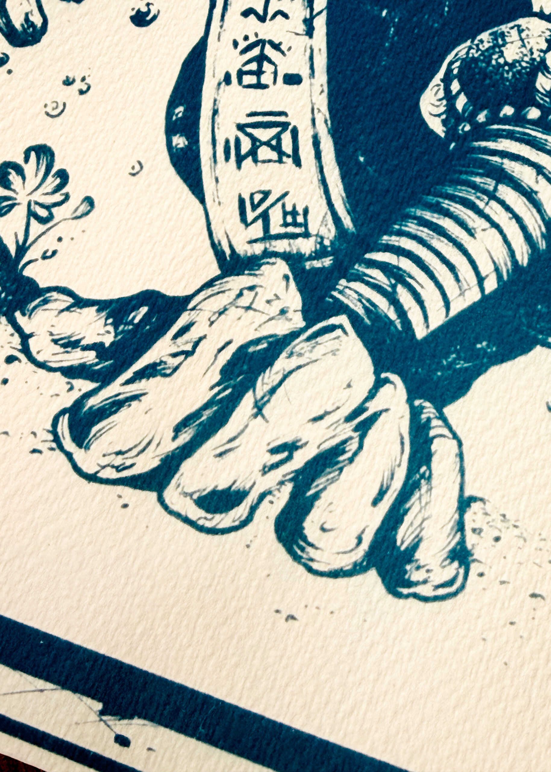 Chaque tirage est réalisé à la main et de manière 100% artisanale, c’est pourquoi l’on peut observer de petites imperfections et de légères variations d’un tirage à l’autre.