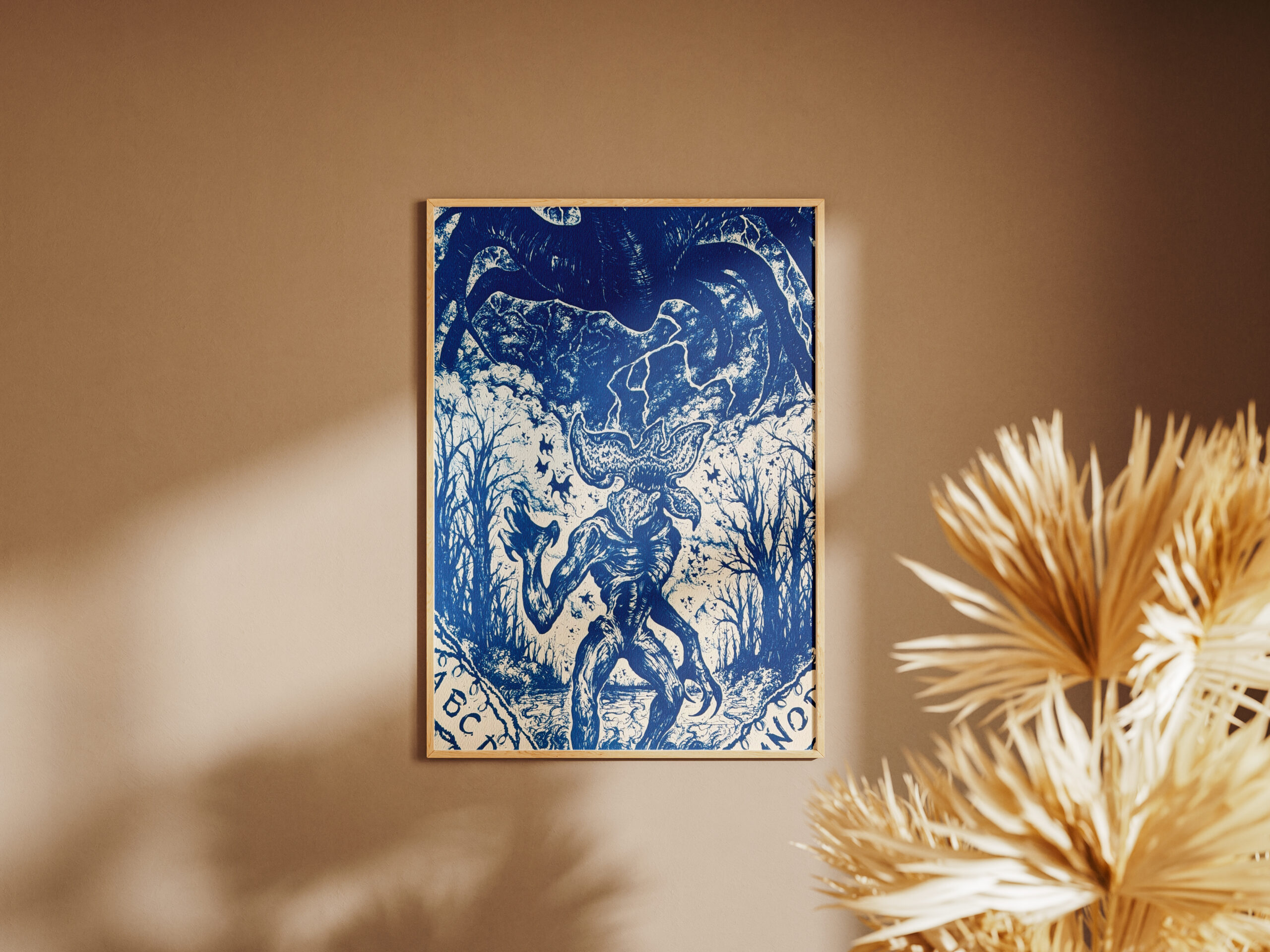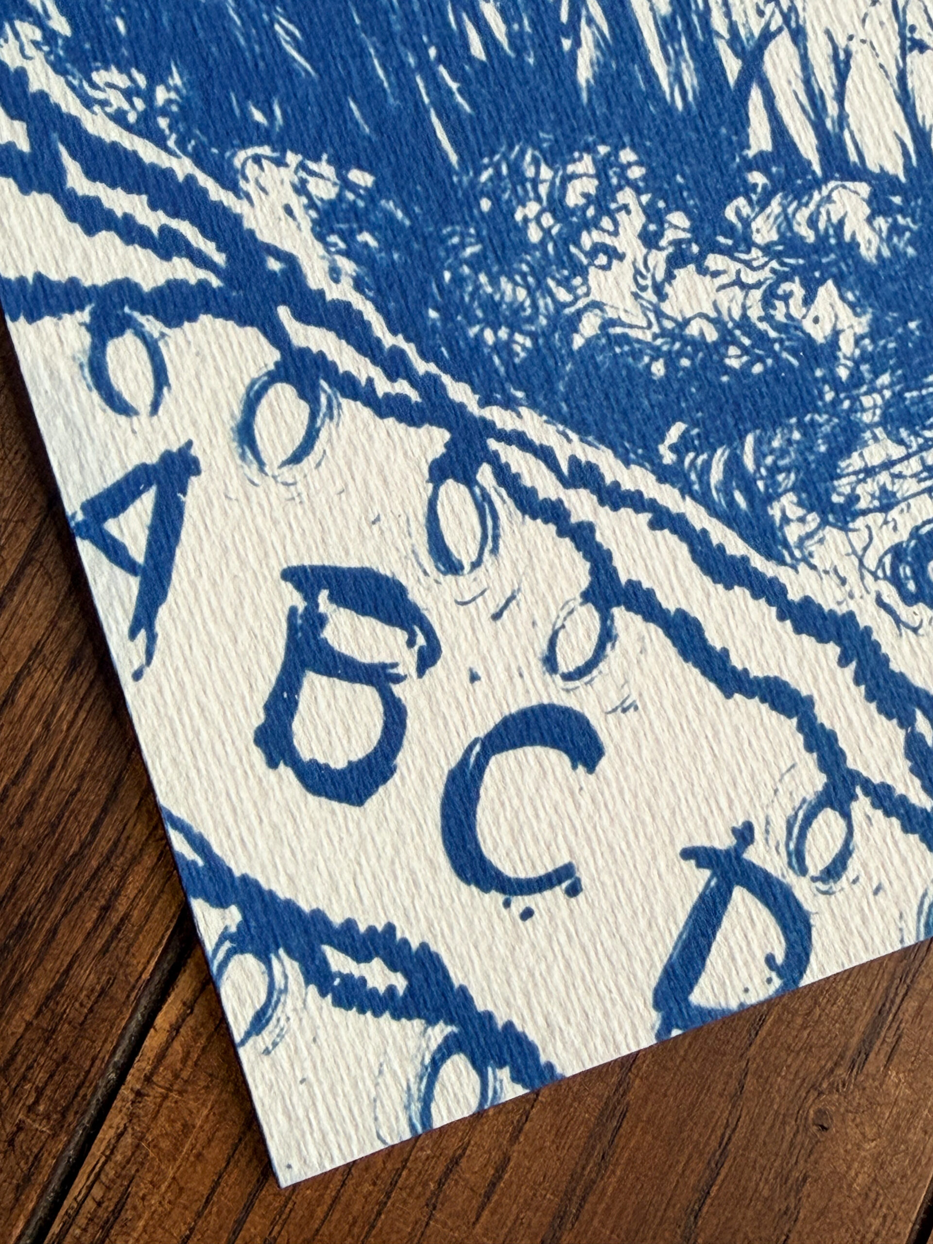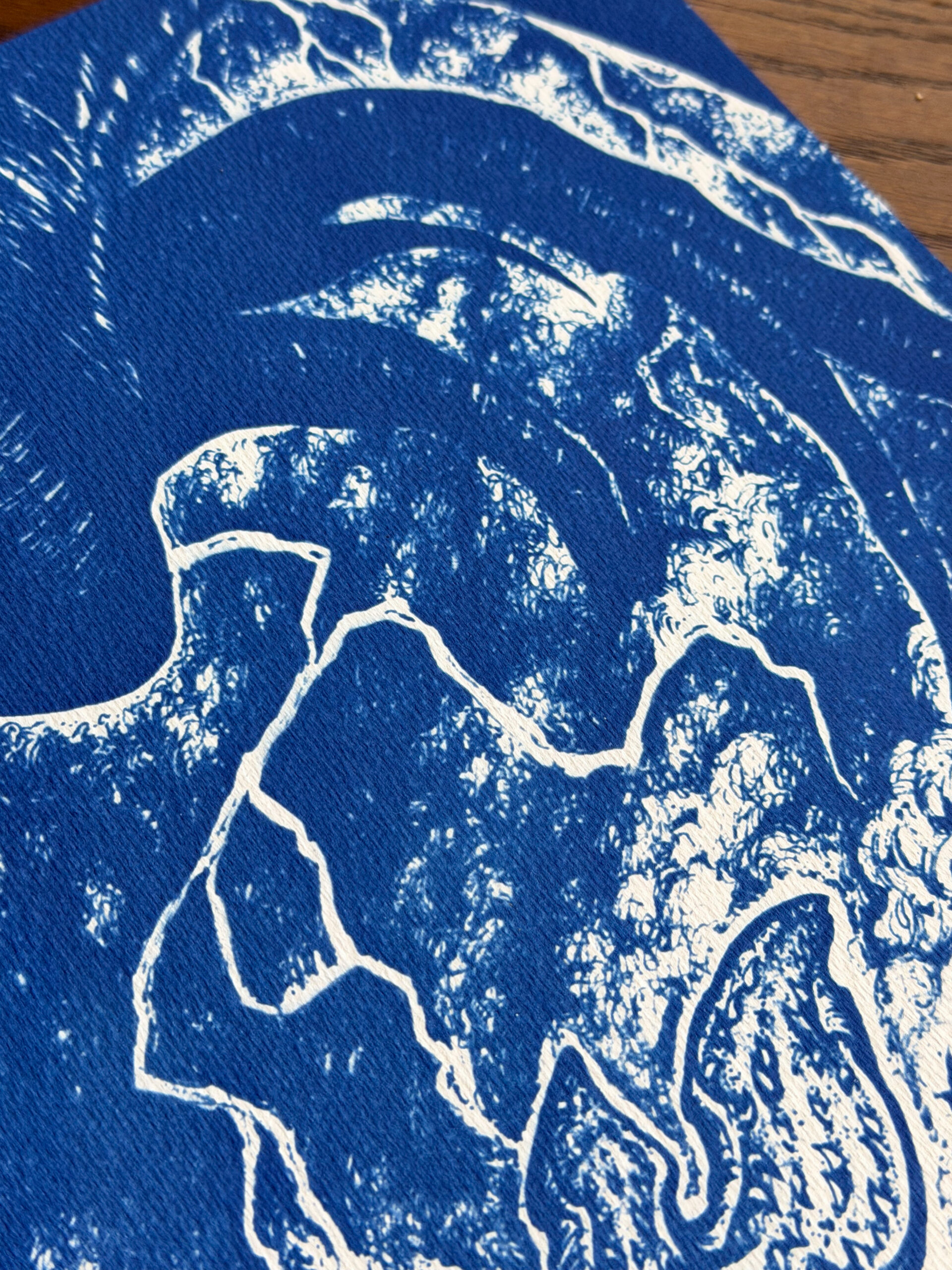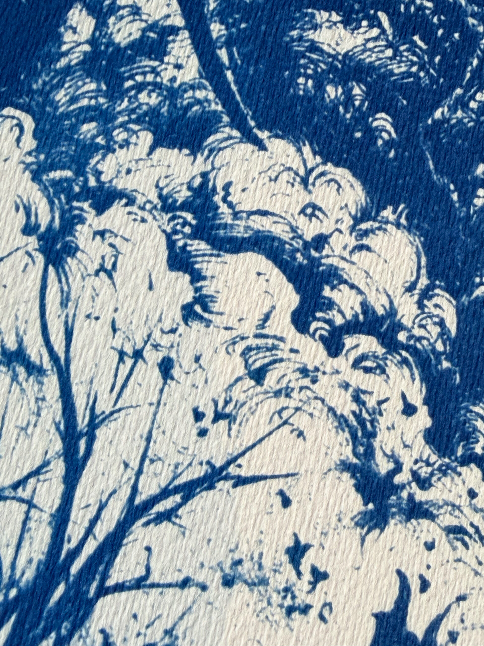Tirage cyanotype disponible dans différents formats, réalisé à la main sur papier aquarelle Fabriano 50% coton haute qualité 300g/m² sans blanchiment.