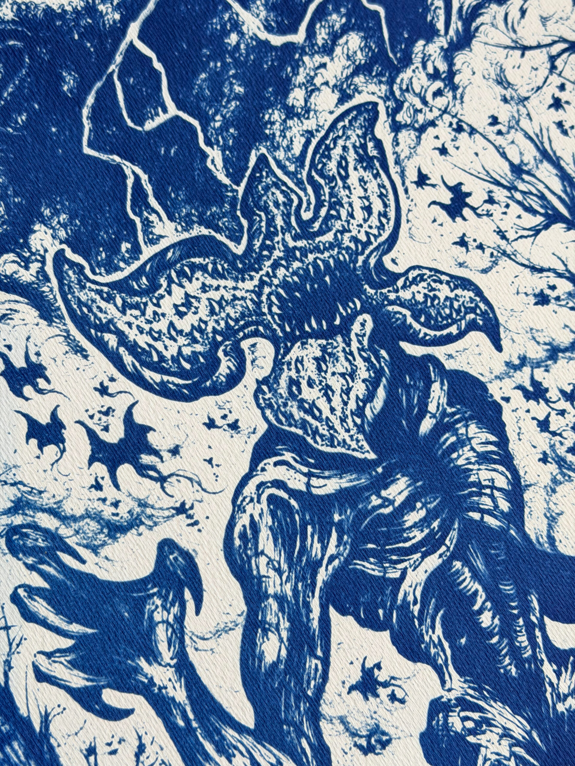 Chaque tirage est réalisé à la main et de manière 100% artisanale, c’est pourquoi l’on peut observer de petites imperfections et de légères variations d’un tirage à l’autre.